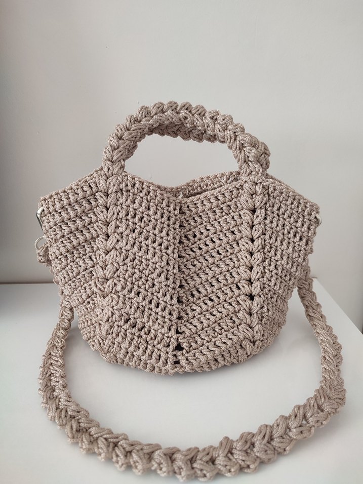 Bej renkte, yumuşak örgü dokusuna sahip günlük kullanıma uygun, örgü sap ve askı detaylarıyla rahat bir görünüm sunar. istenilen renk ve boyutta yapılır