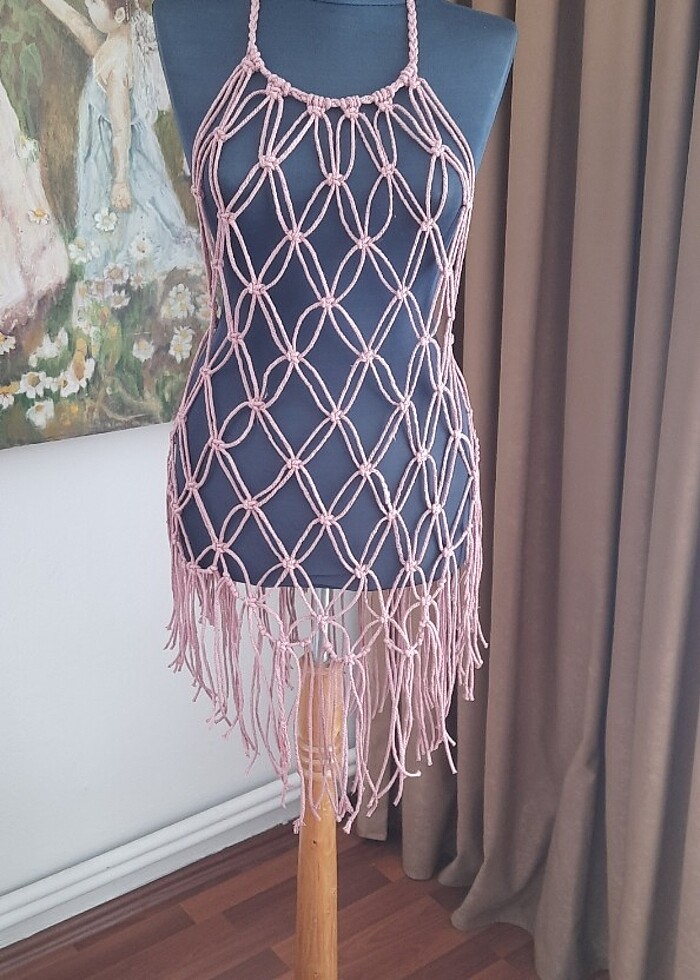 3 büküm makrome ipi ile makrome teknigi ile örülmüştur S ve m beden uyumludur. Elde yikama yapiniz makinede yikanmaz