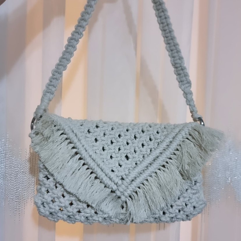 Makrome Püsküllü Örgü Omuz Çantası