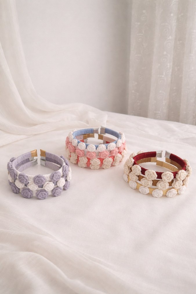 Elastik, pastel renklerde çoklu nakışlı çiçek desenli bohem vintage tarz kadın taç