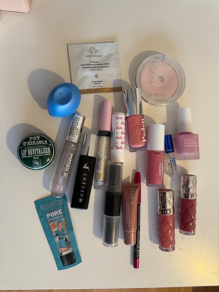 Görselde gördükleriniz.İki adet Sephora dolgunlaştırıcı gloss biri 7 numara biri 5 numara az kullanılmış ikiside üç kere sürüldü.Benefit marka makyaj bazı tester.Muscent Dior Hypnotic Poison parfüm az kullanılmış.Lip Balm naneli pot o’miracle yazan çok kullanılmış.Arya Bektaş markası Hola gloss ve allık cold pink rengiyle doll pink rengi az kullanılmış.Flormar 220 numaralı kalem az kullanılmış.Aybüke Çangal markası Swetella az kullanılmış allık.Essence gloss az kullanılmış şeffaf.Beaulis pembe pudra çok kullanılmış.Golden Rose Seyahat boy kaş sabitleyici jel az kullanılmış.Blistex az kullanılmış lip balm.Victorias Secret gloss holo glow bitmeye yakın.Pelin Aden markası Paden gloss rabbit tongue rengi az kullanılmış.Barbie lip balm az kullanılmış.Drunk Elephant marka tester d-bronzi.Wet n Wild contour ve highlighter stick çok kullanılmış.