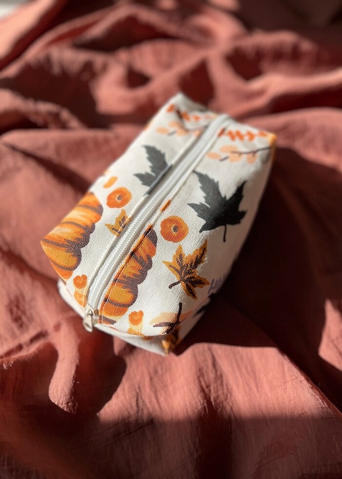 Makyaj çantası organizer duck kumaş leke tutmaz suya dayanıklı balkabaklı sonbahar esintisi