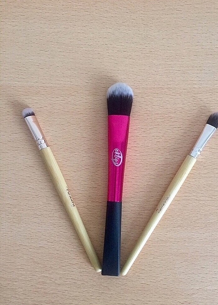 Hiç kullanılmadı 1 adet Fondöten fırçası 1 adet oturtma fırçası 1 adet far sürme fırçası Markası eklips ve for your beauty