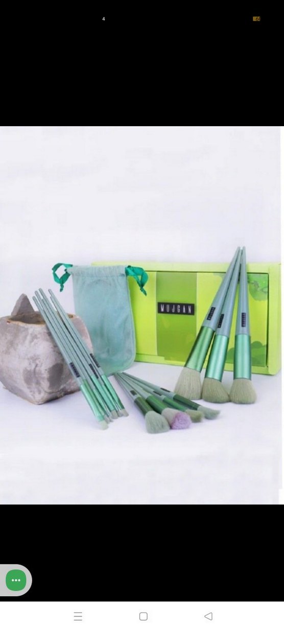 Pastel yeşil tonlarında, yumuşak kıllı makyaj fırçalarından oluşan set, pratik saklama kesesi ile birlikte gelir.