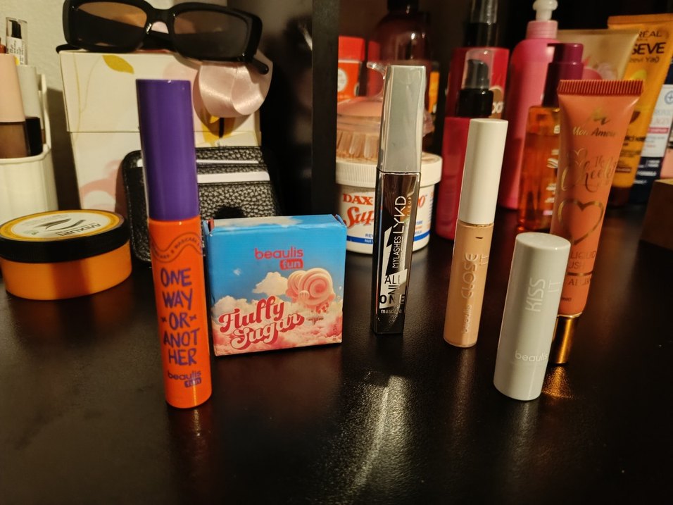 beaulis fun allık en fazla 4 5 kere kuladım fırçadan kaynaklı iz vardır maskaralar %60 doludur hala ıslaklardır ruju hiç kullamadım kapatırken ezildi kapatıcı Pembe corretter olarak kullanıyordum %50 doludur allık çok pigmentli şeftali turuncu gibi %80 dolu kendi fiyatlarını koydum alana hayırlı olsun ✨