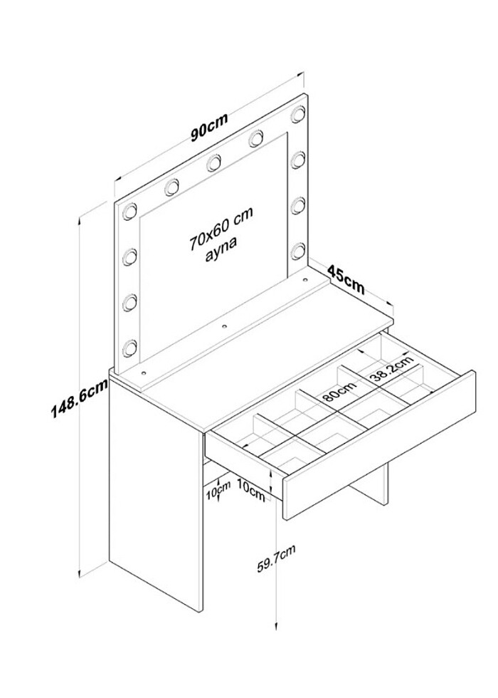 Spot ışıklı çekmeceli makyaj masası dolabı mdf