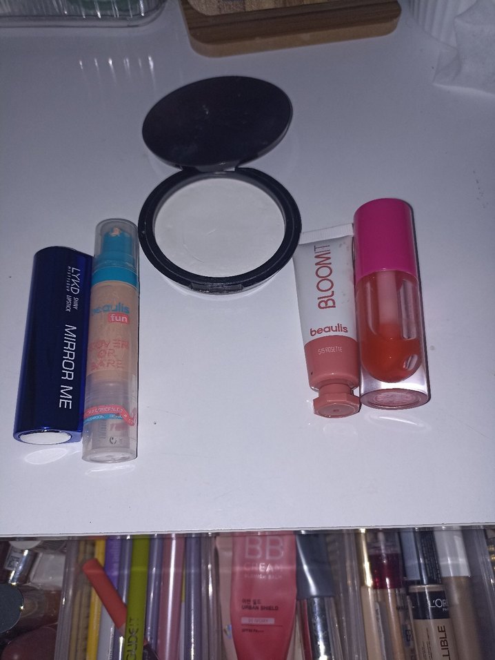 Toplu fiyattırFlormar transparan pudra(tamamı dolu sadece kapak sıkıntısı var),revoliton glos(%70i dolu),beulis fun kapatıcı,lykd ruj