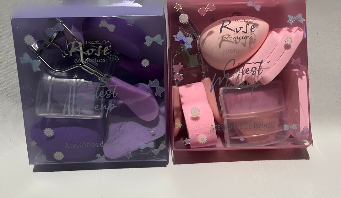 İçinde yumuşak dokulu makyaj süngeri, fırça ve kirpik kıvırıcı bulunuyor.
