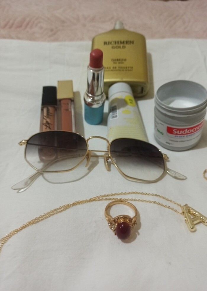 Parfüm ortaya kadar dolu fondöten sadece denendi koyu geldi bir tık bana sdocrem göründüğü gibi rujlar az kullanıldı