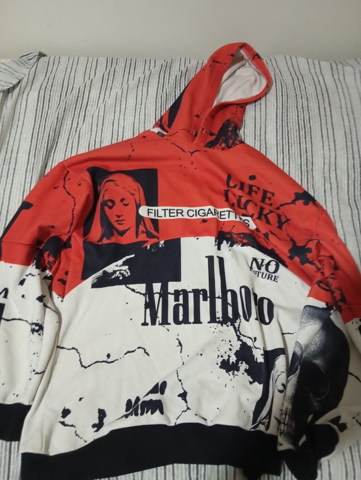 Marlboro baskılı sweatshirt herhangi bir deposu yok, iki iplik çok soğuk havalar için uygun değildir