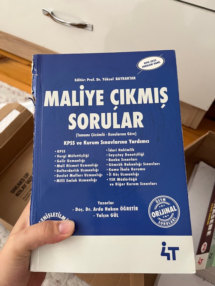 Arda hakan öğretir KPSS ve kurum sınavları için tam çözüm ve konuya göre maliye çıkmış sorular içerir. Vergi denetimi, idari hakimlik, banka sınavları gibi konuları kapsar. Kitap taşıması zor olduğu için bölüm bölüm yırtıldı az kullanılmış