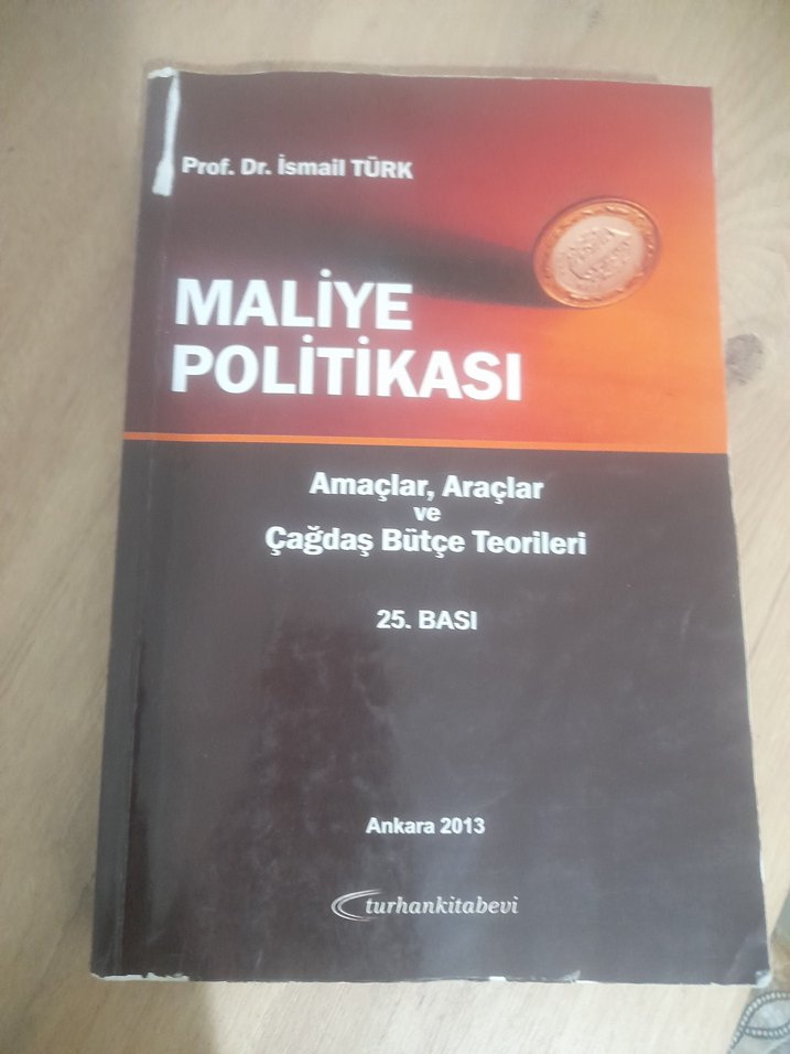 Prof. Dr. İsmail Türk'ün yazdığı Maliye Politikası kitabı, amaçlar, araçlar ve çağdaş bütçe teorilerini içerir. 2013 Ankara, 25. baskı. az kullanıldı temiz