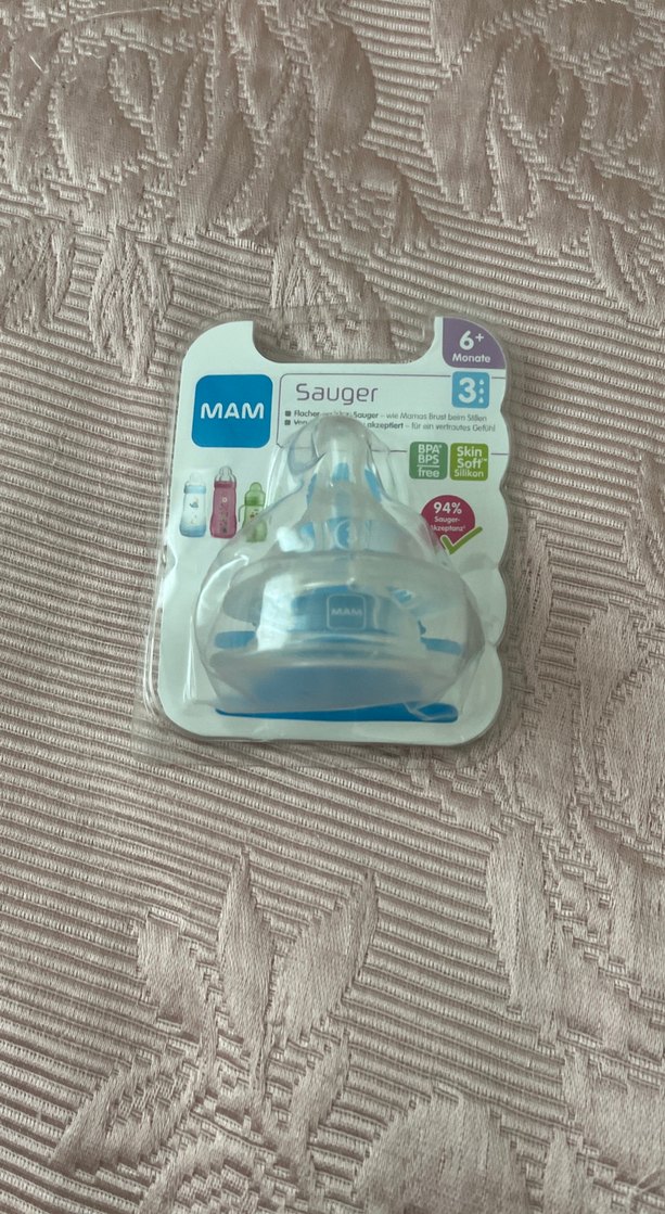 MAM bebek biberon emziği 6 ay ve üzeri için, cilt dostu ve BPA içermeyen malzemeden üretilmiştir. %94 kabul oranı ile kolay beslenme sağlar.