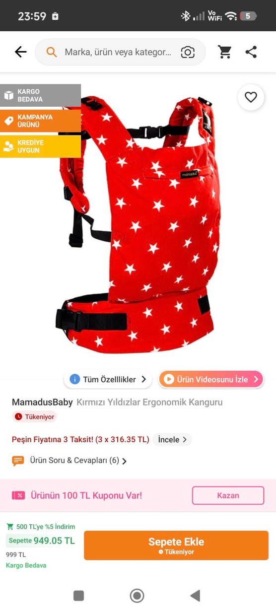 MamadusBaby kırmızı yıldız desenli ergonomik kanguru, ayarlanabilir askılar ve sağlam bel desteği sağlar. ⭐sıfır ayarında sorunsuz bir kaç kere kullanıldı bebeğim büyüdüğü için satıyorum.