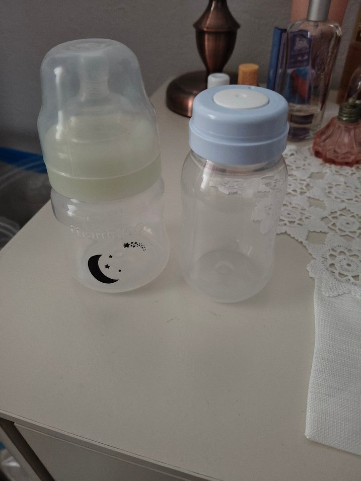 Biberonu bir kez kullandım. Karanlıkta yeşil kısmı parlıyor. 160 ml. Diğeri de Wee baby süt saklama kabı. Onu da sayılı kullandım. Artık ihtiyaç duymuyorum. İkili satıyorum. İsteyene ayrı ayrı ilan açabilirim.