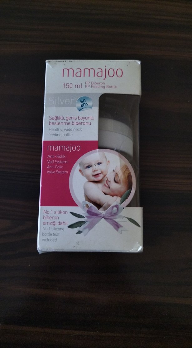 Mamajoo 150 ml geniş boyunlu, anti-kolik valf sistemli, BPA içermeyen beslenme biberonu. No.1 silikon emzikli, sağlıklı beslenme sağlar.