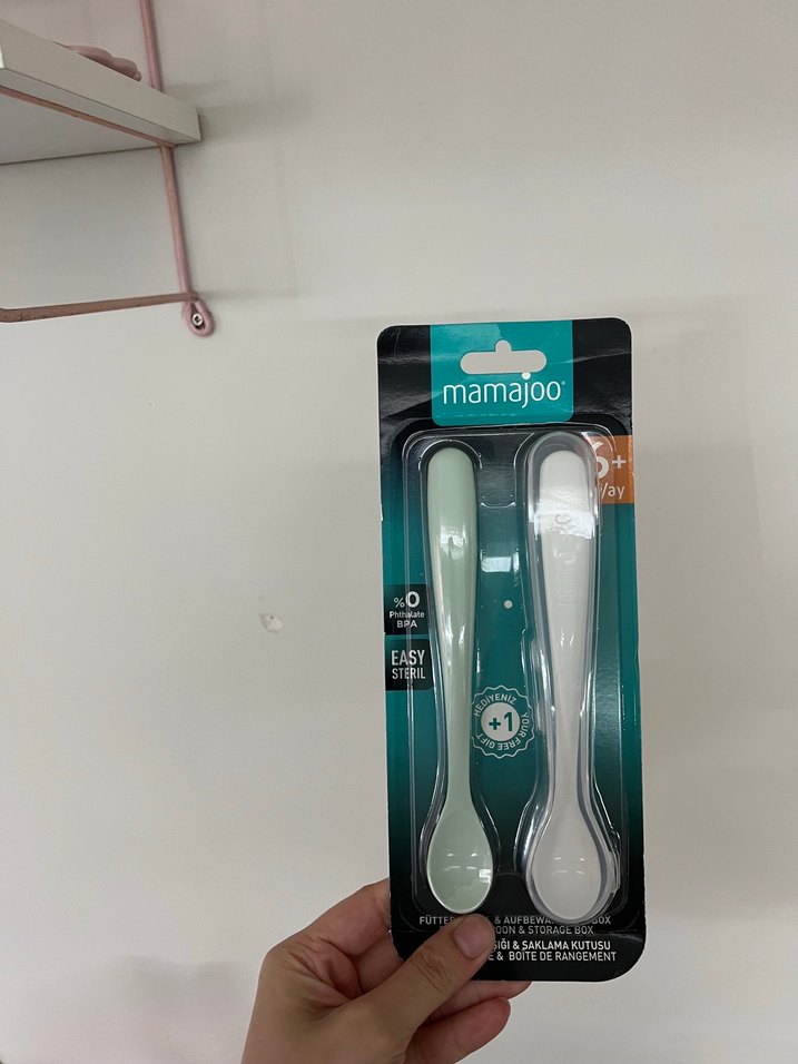 Mamajoo turkuaz renkli bebek çatal ve kaşık seti, 6ay ve üzeri için kolay ve güvenli kullanım sağlar. ️