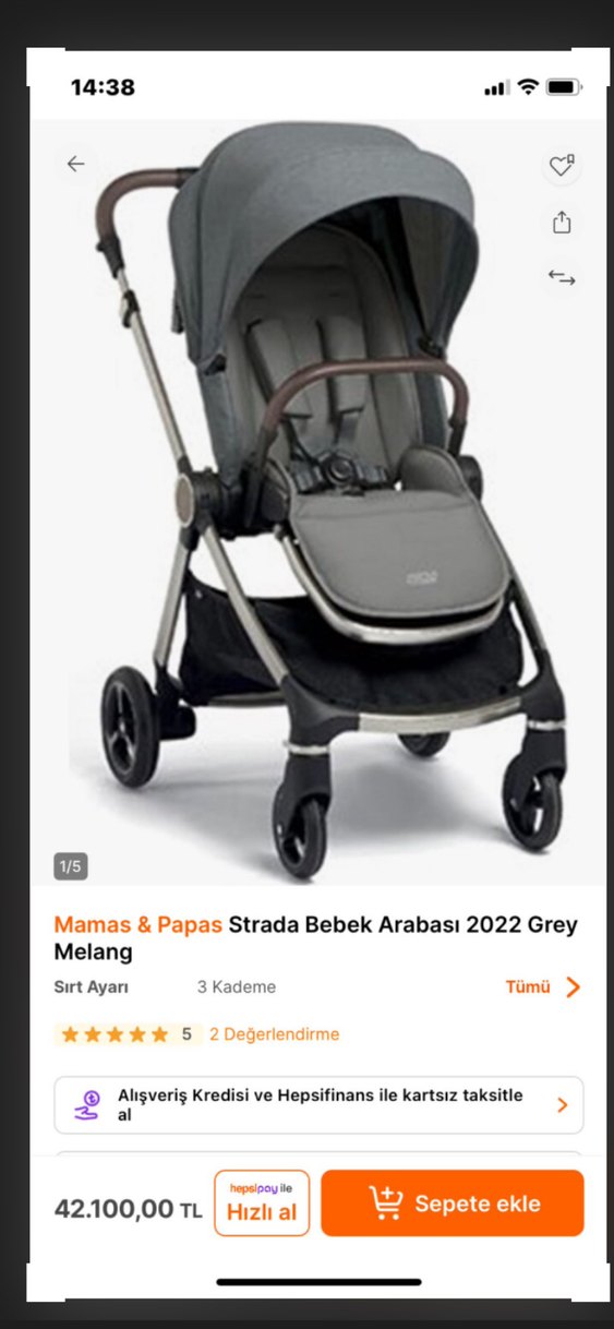 Mamas & Papas Strada gri bebek arabası, Ürün çok temiz kullanılmıştır, yeni gibi olup baston tipi arabaya geçtiğimiz için satışı yapılmaktadır. Ürünün 3 kademeli yatış pozisyonu vardır tam şekilde yatmaktadır . Yenidoğandan itibaren rahatlıkla kullanılmaktadır. Ön tutacak plastiğinde ısırmadan kaynaklı küçük bir deforme vardır.