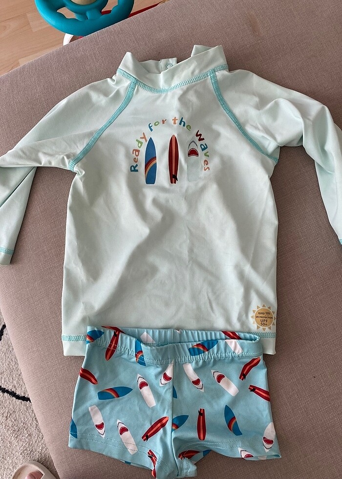 12-24 ay bebekler için 50+faktör güneş korumalı uzun kollu mayo. Decathlondan alınmış şapka ile gönderilecektir. Sadece geçen yaz birkaç kez kullanıldı. En ufak bir deformasyonu bulunmamaktadır.