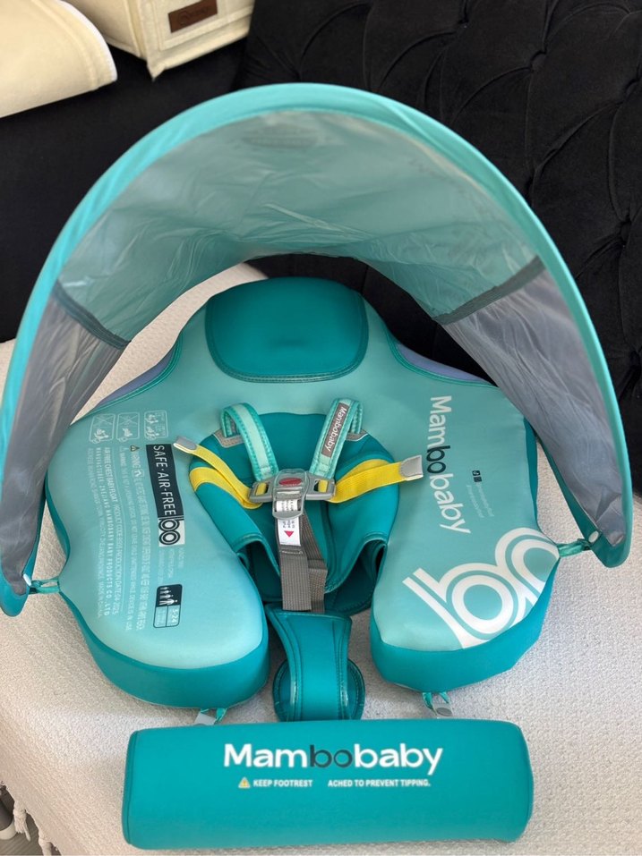 Mambobaby markalı, güneşlikli ve emniyet kemerli turkuaz bebek bisiklet koltuğu. 1 kere kullandık oğlum sevmedi