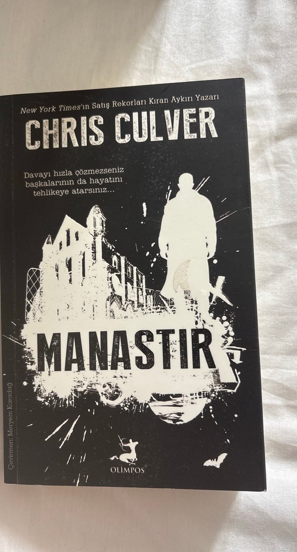 Chris Culver'in Manastır adlı romanı, davayı hızla çözmezseniz başkalarının hayatını tehlikeye atarsınız temasını işliyor. Olimpos yayınevi.