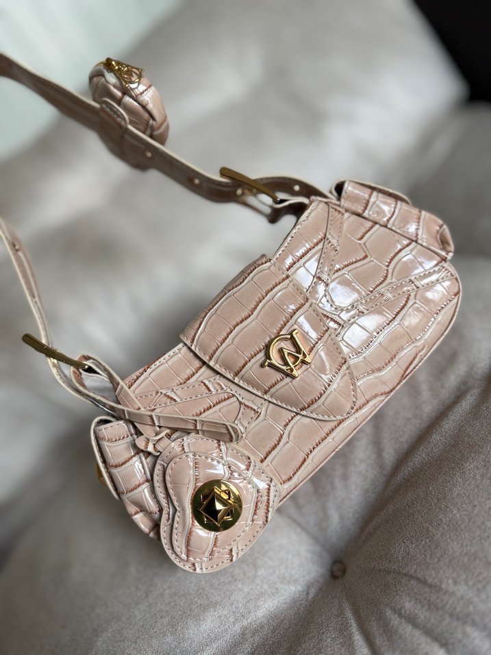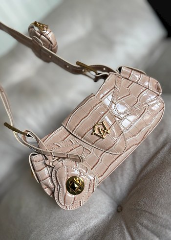 Tek adettir‼️ Pastel pembe renkte, yılan derisi desenli deri çanta, tokalı detaylarla Paris sokak modasını ve klasik zarafeti yansıtıyor.