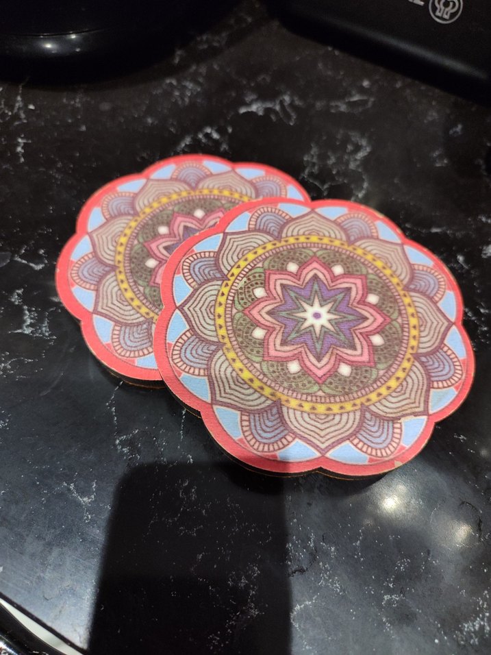 Renkli mandala desenleriyle dikkat çekiyor. Kırmızı, pembe, sarı ve mavi tonlarında detaylı desenlere sahip.