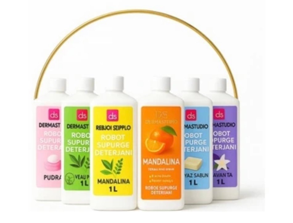 1 litrelik mandalina aromalı robot süpürge deterjanı, temizleme sağlar ve ferah bir koku bırakır. 6 çeşit farkıyla