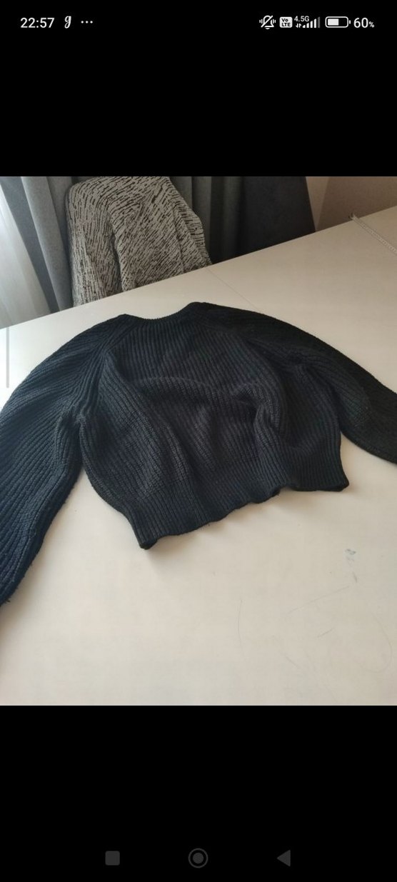 Kadın siyah triko kazak, yuvarlak yakalı, uzun kollu ve rahat kesim. Günlük kullanıma uygun, sade ve konforlu bir sokak stili parçası.