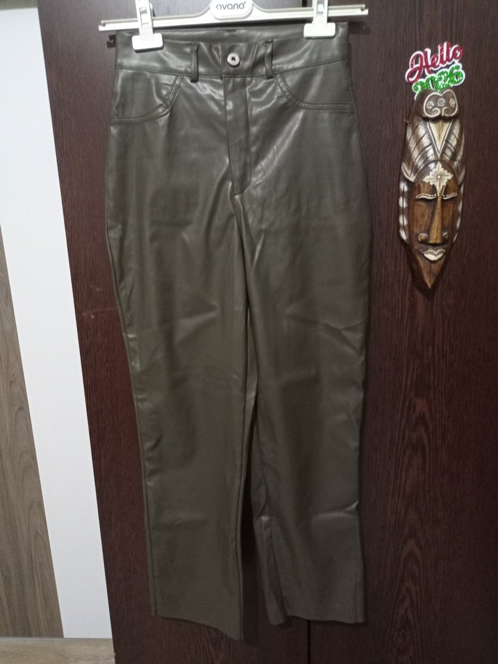 Kemer detaylı, haki deri midi boy kadın pantolon, rahat kesim ve günlük kullanım için uygundur. Desensiz ve sokak stiline uygun.hediye geldi beden olmadığı için hiç kullanılmadı harika bir parça