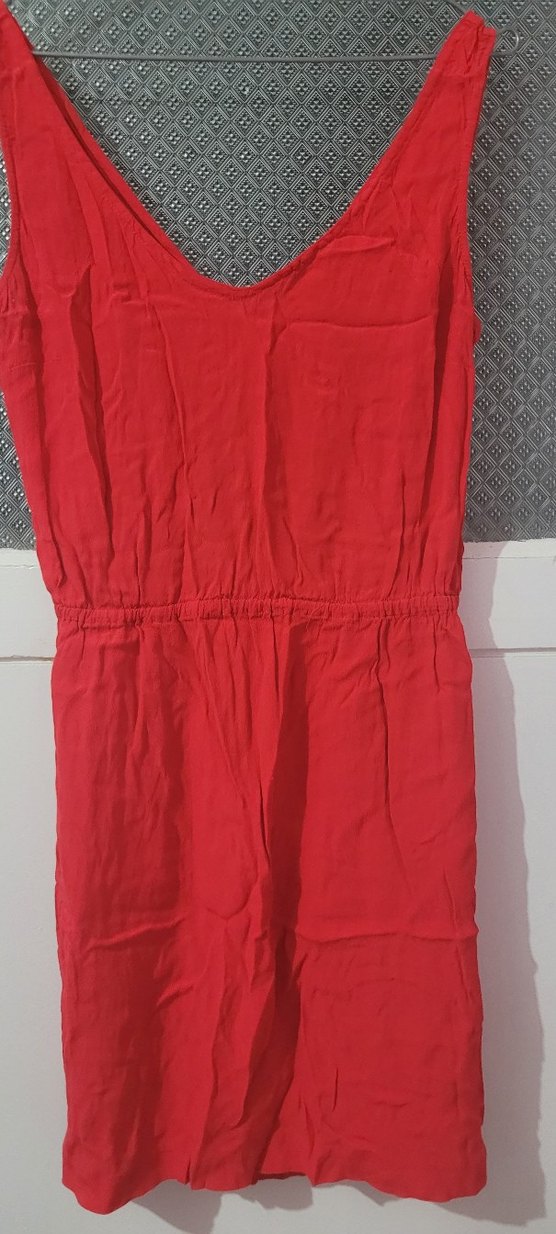 Kırmızı kolsuz, V yakalı, Ürün sayılı giyildi yeni gibi yazlik arkası fiyonk dekolteli tiril tiril elbise mango markalı Ölçüleri fotolarda belirtildi