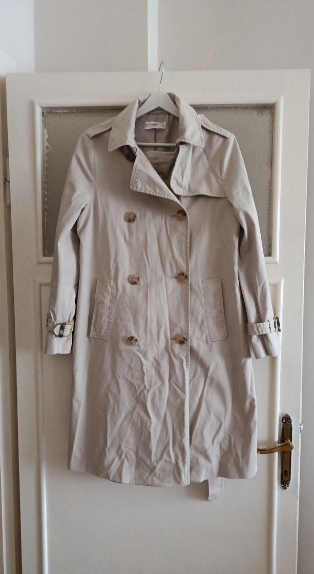 MANGO 38 beden Bej Midi Keten Trençkot Düğmeli