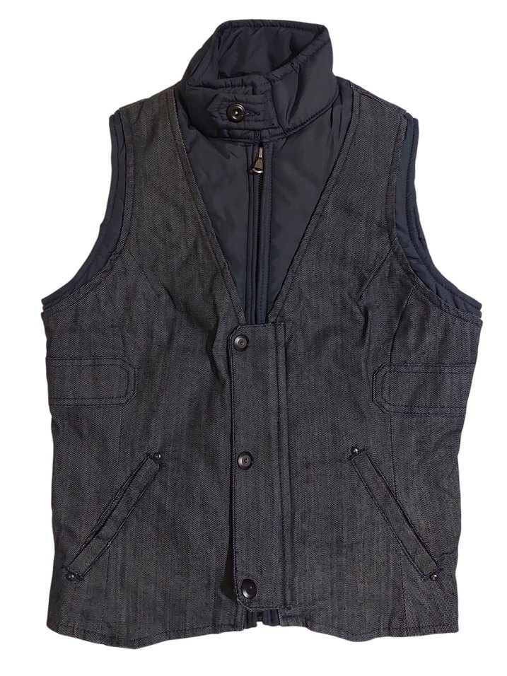Gri kot kumaştan, kemerli ve yüksek yakalı, kolsuz şişme yelek. Günlük kullanıma uygun, rahat ve fit kesim.Orjinal Mango anorak kumaş ve kot kumaştan üretilmiş, yüksek kalite ürün. Boy 55 en 44 cm, sıcak tutar, rüzgardan korur, 1 yâda 2 defa belki giymişimdir. Sıfır kondisyonda tertemiz hatasız, Lacivert antrasit ağırlıklı ve anorak kısmı lacivert.