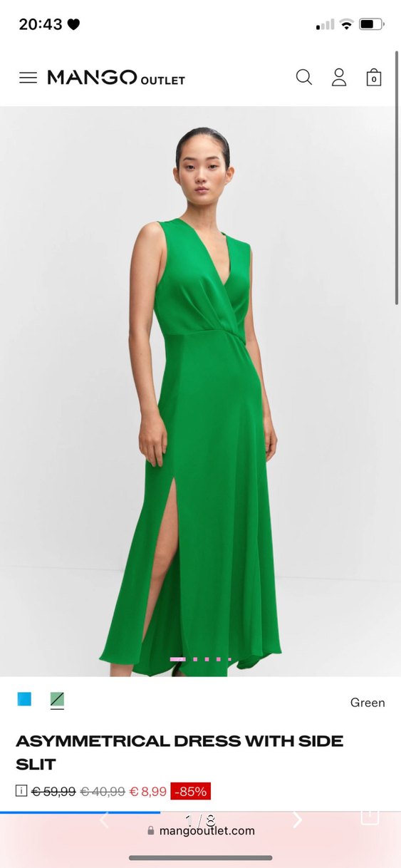 Mango Asimetrik Yeşil V Yakalı Uzun Yırtmaçlı Drapeli Elbise