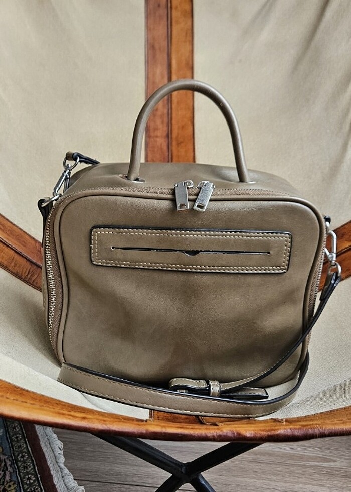 Mango askılı postacı (messenger) çanta, vizon rengi. Çok ufak iki kusuru var, kullanırken görünmeyecek durumda, arkada kalıyor, fotoğrafladım. Tam bir hayat kurtarıcı, ufak görünüyor ama içine çok şey sığıyor, küçük katlanan şemsiye dahi koymuşluğum var. İyi durumda ve tertemiz. #mango #zara #stradivarius #bershka #hm #ipekyol #network #twist #yargıcı #yargici