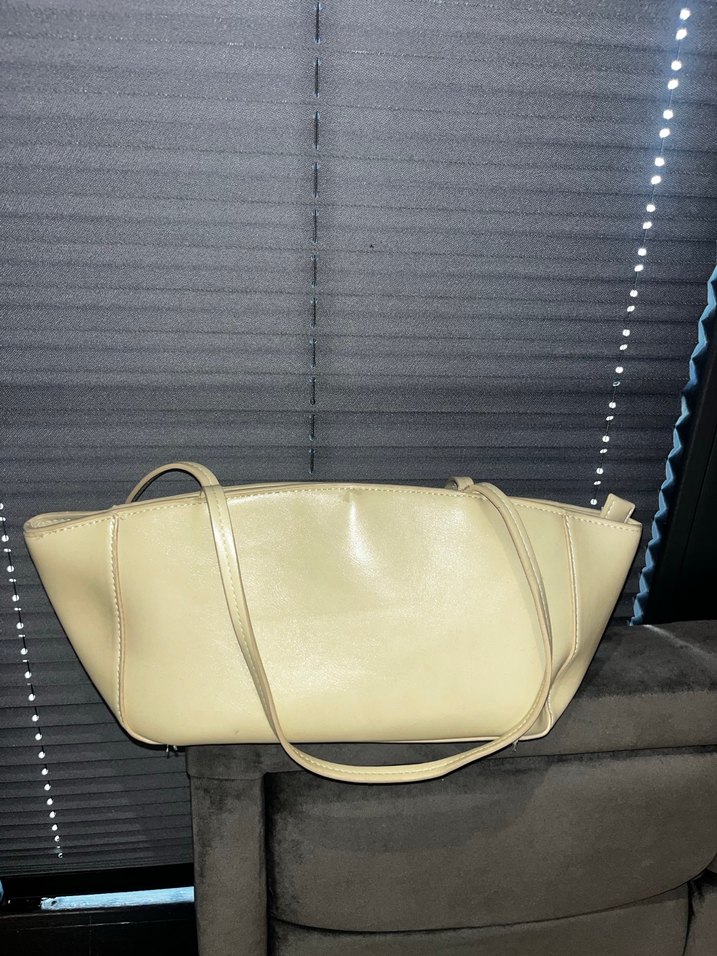 Bej deri kadın çantası, minimalist ve çağdaş bir tasarıma sahiptir. Desensiz ve sade görünümüyle günlük kullanım için zahmetsiz şıklık sunar.