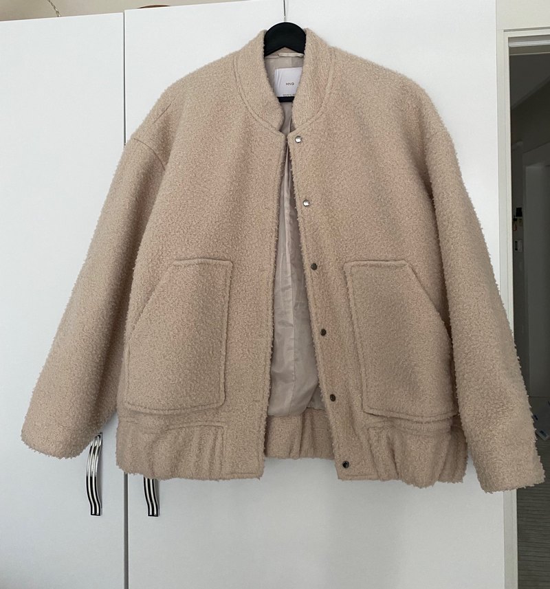 Bej renkli, düğmeli, uzun kollu, midi boy kadın ceketi. Rahat kesimi ve iki büyük ön cepli, yumuşak ve sıcak kumaştan üretilmiştir. Mangonun viral ceketi. 2 sezon önce aldım ama sayılı giymişimdir. Hiçbir problemi yok.