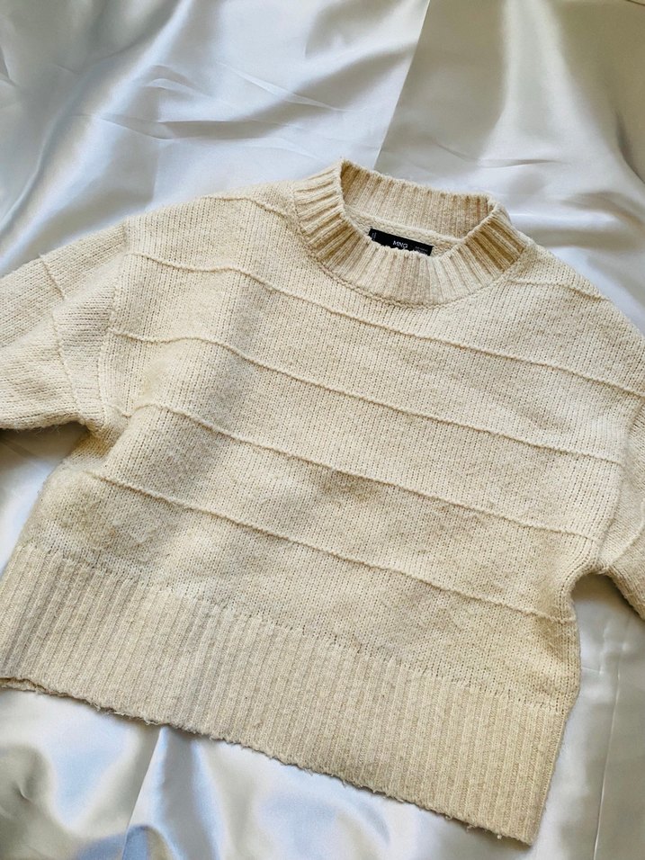 Mango Bej Kadın Kazak, Yuvarlak Yaka, Salaş
