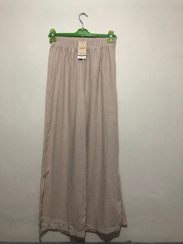 Mango Bej Kadın Keten Rahat Kesim Pantolon