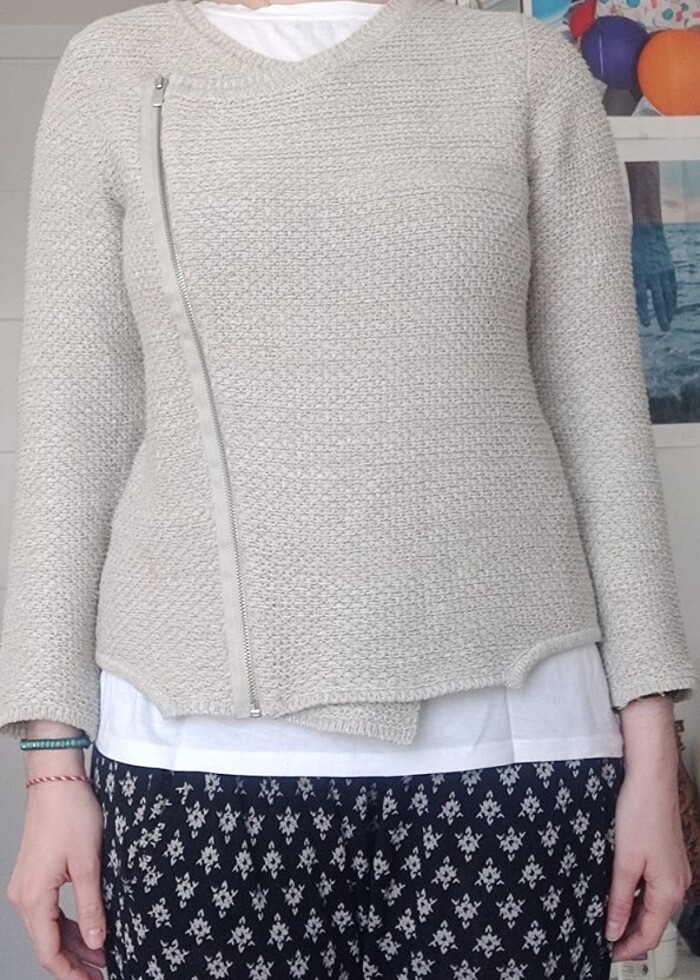 M006 Ürün İçeriği: 51% akrilik 49% pamuk Asimetrik kesim, fermuarlı, içten çıtçıtlı, örme, bej kısa ceket.