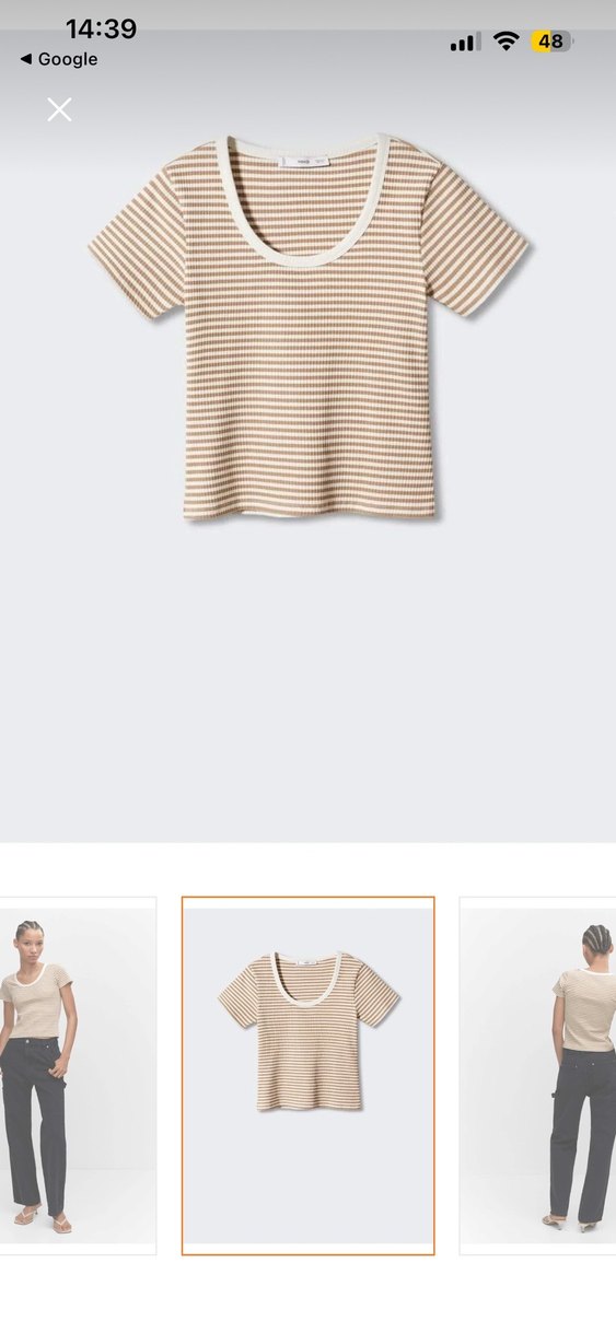 Kısa kollu, tek renk bej pamuk tişört, tekne yakalı ve ince çizgili desende. Günlük kullanıma uygun, rahat ve şık bir parça.