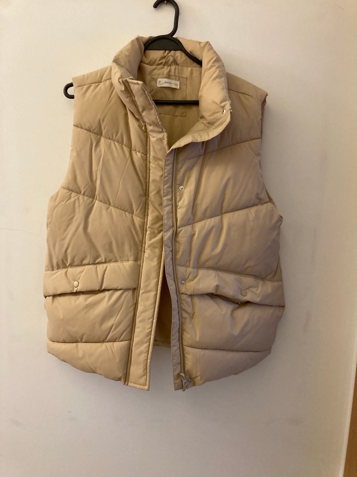 Bej renkli, yüksek yakalı ve fermuarlı kadın yelek. Rahat kesimi ve sentetik kumaşıyla günlük sokak stiline uygundur. Bi kez kullanıldı kusuru yoktur
