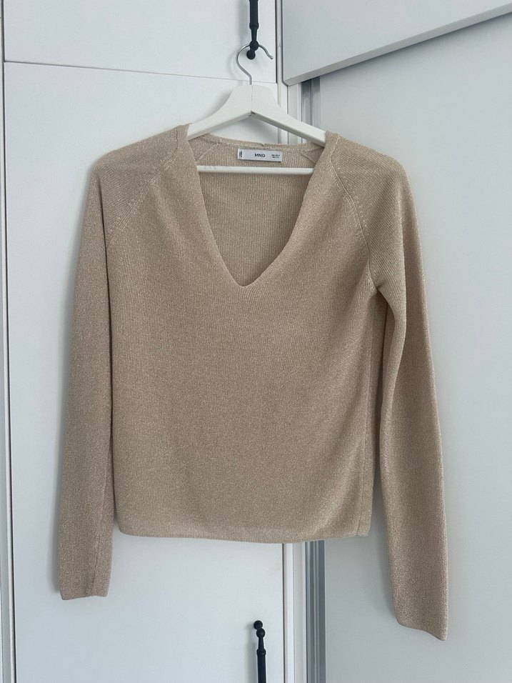 Mango Bej V Yaka Örgü simli Kadın Kazak
