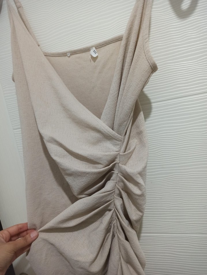 Mango Bej Kruvaze Midi Elbise, Elbise, ister resmi bir etkinlik isterse günlük bir gezinti olsun, her durum için mükemmeldir. Kruvaze stili elbiseye şıklık katarken, midi boyu ona klasik ve zamansız bir görünüm kazandırır.Bej rengi çok yönlüdür ve benzersiz bir görünüm yaratmak için her türlü aksesuarla kombinlenebilir.