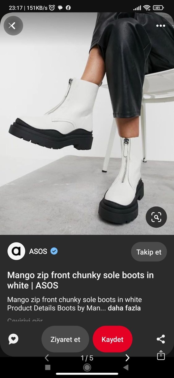 Mango Beyaz Fermuarlı Kalın Tabanlı Kadın Bot