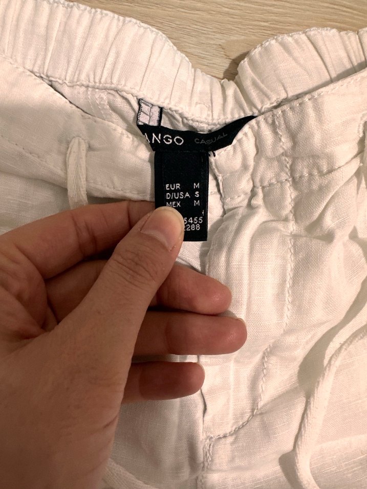 MANGO Beyaz Keten Midi Kadın Pantolon