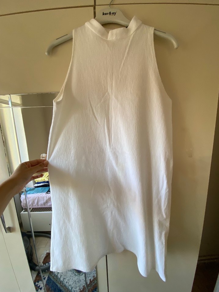 Mango Beyaz Kolsuz Yüksek Yakalı elbise