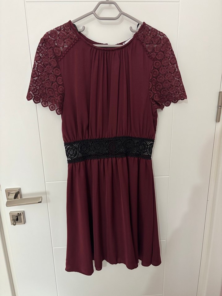 Mango Bordo Dantel Detaylı Elbise