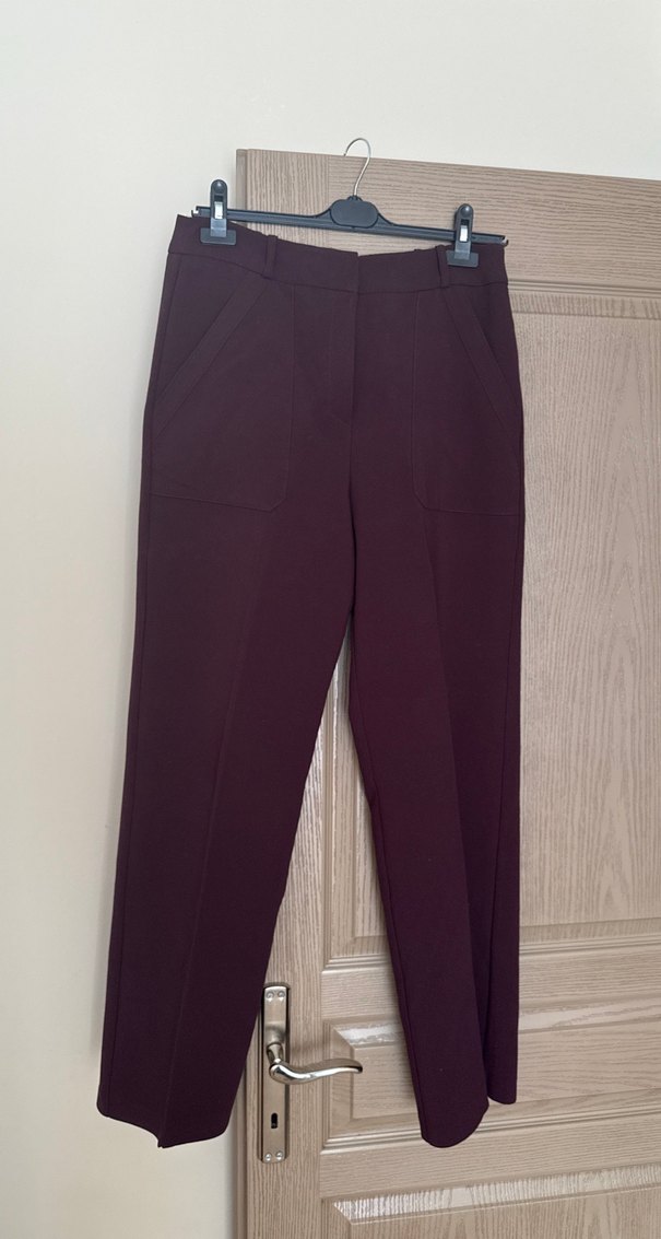 Yüksek bel krep kumaş cepli bordo 40 beden