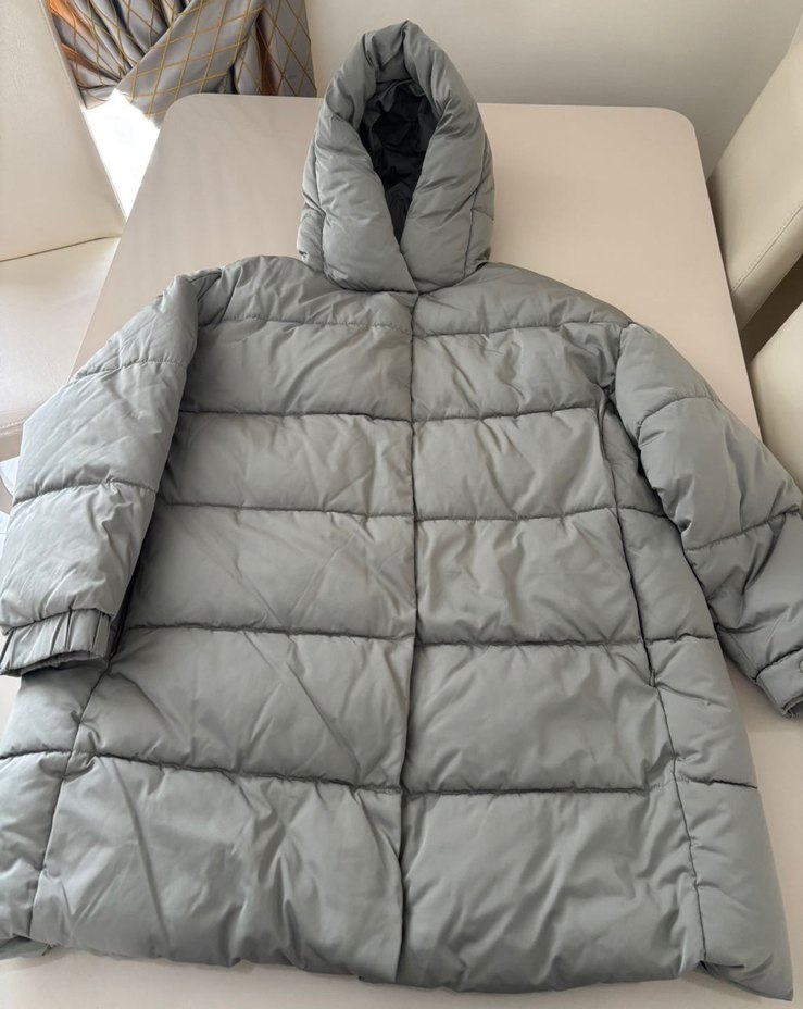 Mango büyük beden kapişonlu kapitone mont. 3XL beden. %100 polyester. Astar %100 polyamid. Soft yeşil. Orijinal hiç kullanılmamış yeni ve etiketli ürün. Yanlardan fermuarlı 2 cepli. Çıt çıt ve fermuar kapamalı. İçi dolgulu / kolları çıt çıt ile ayarlanabilinir.